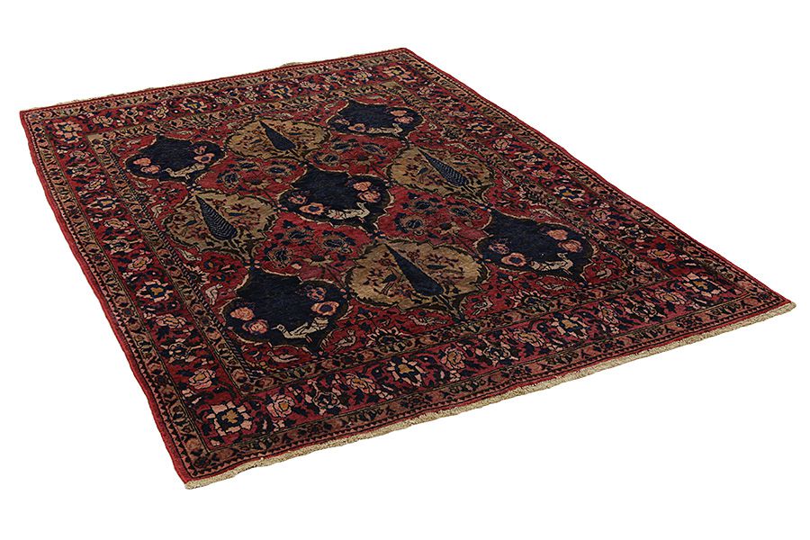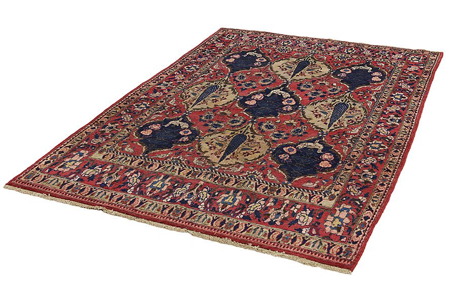 Tappeti Bakhtiari: Sui monti Zagros,a occidente della città Isfahan,intorno alla città Shar-e-Kurd, vivono i nomadi Bakhtiar.I loro tappeti sono noti per il disegno con vari quadrati ripetuti, in cui vengono rappresentati fiori o animali.Per questa ragione il disegno si chiama " Giardino"(Khesti).I loro tappeti sono assai robusti,dalla tessitura fitta e sono di una lana di qualità molto buona,ricavata da pecore che pascolano ad alta quota.I migliori tappeti Bakhtiari che hanno la maggiore fittezza di nodi si chiamano Bibibaf.In oltre in molti disegni si notano influenze dei manufatti Isfahan(Boldaji,Feridan,Saman).