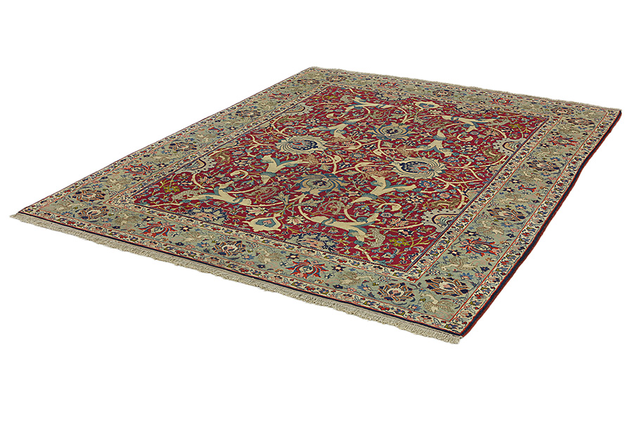 Tappeti Tabriz: La città di Tabriz è il capoluogo della provincia Azerbaijan,nell' Iran sudoccidentale.Fino alla fine dell' epoca delle carovane,era il centro più importante per il commercio e la tessitura dei tappeti.Da qui l' Occidente si procurava i capolavori creati da rinomati e abilissimi artigiani.L'alta qualità di questi manufatti li rese assai noti sui mercati di tutto il mondo.Sorsero molti laboratori di tappeti artigianali ,dove tessevano disegni vecchi e nuovi in nodi molto fitti e con materiali di ottima qualità. La seta e la lana sottile pregiata, li rendono tappeti d' alta classe.Da nessun' altra città della Persia passavano tanto grande varietà e tale quantità di tappeti.Con medaglioni o senza, i loro disegni sono pieni di fantasia e unici.Fiori, raffigurazioni e versi di poesie, decorano in oltre i tappeti. I colori di tappeti Tabriz dominanti sono il beige,il blu e il rosso.