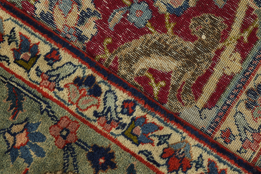 Abrash: Causa la differente grassezza delle lane e la differente quantità di sale ,nel corso del processo di tintura ,le lane assorbono quantitativi diversi di colore.Questo non è tanto visibile prima della tintura .Nel corso della tessitura però risultano variazioni cromatiche. Questo si chiama Abrash ed è la prova della genuinità e dell' autenticità di questi tappeti ,per i quali non vengono usate sostanze chimiche. Esempi