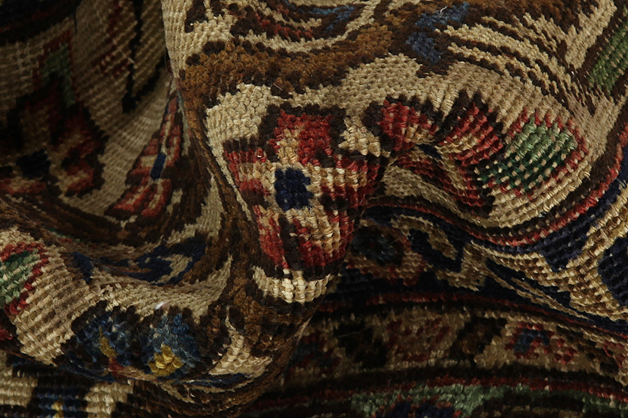 Abrash: Causa la differente grassezza delle lane e la differente quantità di sale ,nel corso del processo di tintura ,le lane assorbono quantitativi diversi di colore.Questo non è tanto visibile prima della tintura .Nel corso della tessitura però risultano variazioni cromatiche. Questo si chiama Abrash ed è la prova della genuinità e dell' autenticità di questi tappeti ,per i quali non vengono usate sostanze chimiche. Esempi