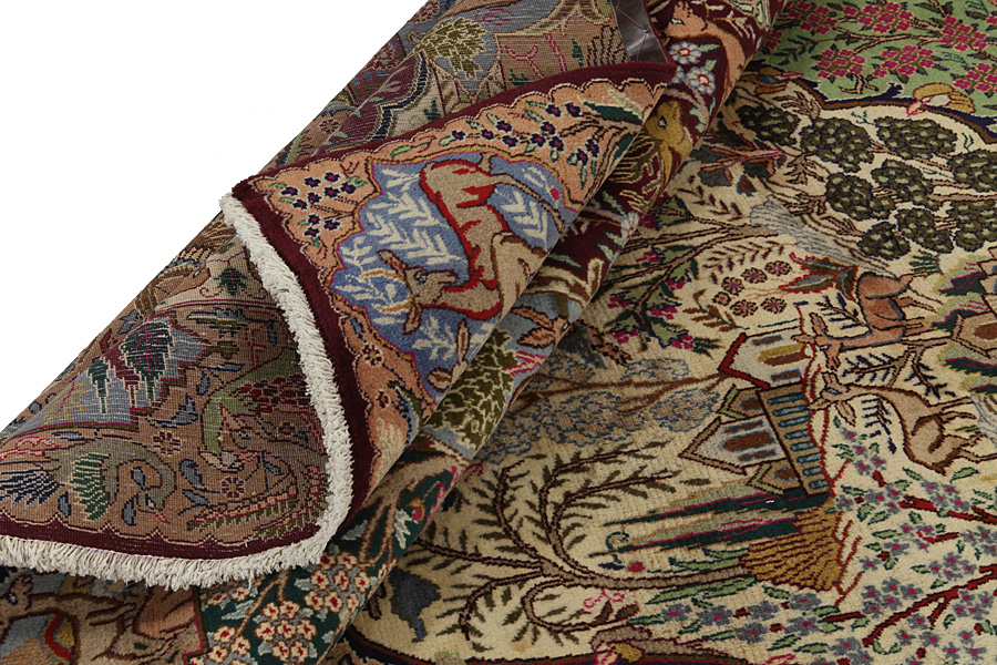 Tappeti Kashmar: La città di Kashmar è situata nella provincia di Khorasan, a sudovest della cittadina Mashad, nell' Iran orientale.Ha un ricco passato storico e il suo antico nome era Torshiz.Vi si producono da secoli tappeti splendidi,di alta qualità. Questi tappeti sono folti,di lana morbida e sottile,nei bei colori dell'azzurro che fa contrasto con il crema e il beige dell' avorio.Caratteristiche dei Kashmar sono le grandi dimensioni e i disegni unici ,che sono come quadri con alberi,fiori e cupole di minareti.In oltre ci sono scene che rappresentano eventi storici (p. es. una vicenda importante della storia della Persia o di un noto personaggio storico o la storia di qualche degno re persiano ).In un Kashman intessono eleganti capolavori in armonia di colori,complessità di disegni ricchi di particolari,per mostrare l' amore dei persiani per l' arte e la bellezza.I tappeti Kashmar sono robusti e invecchiando diventano ancora più belli.