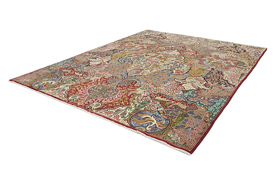 Tappeti Mashad: Mashad è nota come città di Ferdousì ,autore dell' opera Shahnameh(Il Libro Dei Re),considerato l' epopea nazionale dell' Iran.In oltre è nota come città santa degli Sciiti iraniani.Costituisce il capoluogo della provincia Horasan e si trova a 100 km da Teheran.In oltre risulta famosa per le lane pregiate.I tappeti Mashad di un tempo erano di qualità molto buona ed erano tessuti sottili.Per un certo periodo,dato l' alto costo di produzione,la qualità non corrispose oltre alle esigenze degli acquirenti e la richiesta ebbe una diminuzione notevole.Questo fino alla metà del 1950,quando ebbe inizio un significativo miglioramento della qualità .I tappeti allora cominciarono gradualmente ad assumere la forma di opere d' arte,con disegni stupendi,di buon gusto,eleganti e pieni di particolari.Gran varietà di fiori Mir I Botah,bei medaglioni e bordi con ghirlande,adornano ormai i tappeti Mashad.Le tinture impiegate sono quasi sempre vegetali.A Horasan ci sono molti krapprot(un tipo di pianta),da cui si ricava un colore rosso molto dolce.I nodi impiegati sono il senneh(nodo persiano) e il ghiordes(nodo turco).I tappeti Mashad chiamati Turkbaf,per i quali viene impiegato il nodo ghiordes, sono di alto livello qualitativo ed estetico.
