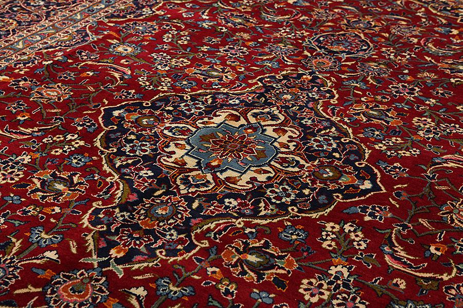 Tappeti Kashan: Tra Isfahan e Teheran, vicino al deserto Dast-e-Kavir, si trova la città di Kashan.Essa è nota per i tappeti artigianali,i prodotti tessili e le sue ceramiche.La città,che costituisce un centro di transazioni commerciali, è importante in quanto è una tappa lungo la Strada della Seta. Si ritiene che il rinomato tappeto Ardebil,che si trova nel museo Victoria and Albert Museum,sia stato tessuto proprio a Kashan nel 16mo secolo.Dal 1800 in poi a Kashan ebbe inizio una produzione organizzata di tappeti da parte di artigiani molto noti.I tappeti Kashan si fecero un buon nome e il loro successo si deve a tre parametri:alla grande varietà di bei disegni in bei colori,alla morbida lana lucente che dona una superficie vellutata ai tappeti e al fatto che dalla vicina Isfahan provengono molti tessitori,che sono abili e famosi artigiani di tappeti.