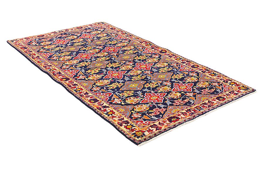 Tappeti Kurdi: Il Kurdistan è una regione montuosa a sud dell' Azerbaijan.Nella zona abitano da tempi immemori curdi nomadi e seminomadi, che vivono di pastorizia ai confini occidentali della Persia e producono la lana migliore del paese.La zona risulta un centro molto attivo nella produzione dei tappeti. Vi intessono meravigliosi manufatti con disegni geometrici, rombi, medaglioni, piccoli ornamenti e i noti motivi Herati, Mina-Khani.Il colore del fondo del tappeti Kurdi è solitamente il blu scuro o il rosso cupo.
