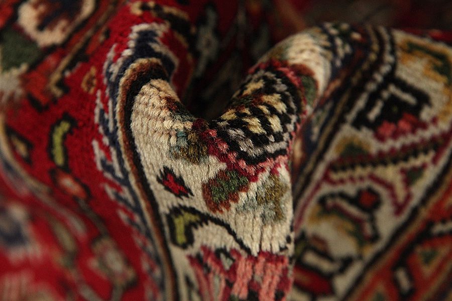 Abrash: Causa la differente grassezza delle lane e la differente quantità di sale ,nel corso del processo di tintura ,le lane assorbono quantitativi diversi di colore.Questo non è tanto visibile prima della tintura .Nel corso della tessitura però risultano variazioni cromatiche. Questo si chiama Abrash ed è la prova della genuinità e dell' autenticità di questi tappeti ,per i quali non vengono usate sostanze chimiche. Esempi