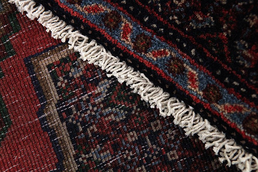 Abrash: Causa la differente grassezza delle lane e la differente quantità di sale ,nel corso del processo di tintura ,le lane assorbono quantitativi diversi di colore.Questo non è tanto visibile prima della tintura .Nel corso della tessitura però risultano variazioni cromatiche. Questo si chiama Abrash ed è la prova della genuinità e dell' autenticità di questi tappeti ,per i quali non vengono usate sostanze chimiche. Esempi