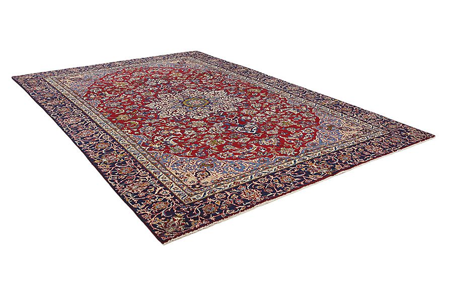 Tappeti Isfahan: Al centro dell' Iran tra i monti Zagros e il deserto,si trova la città di Isfahan.Oggi costituisce un significativo centro industriale con 1,2 milioni di abitanti.La cittadina è un gioiello architettonico.I vecchi Isfahan a differenza dei recenti,non avevano un medaglione centrale.Tutta la superficie del manufatto era ricoperta di elaborati fiori elicoidali e di fiori anthemia(palmette).I più recenti tappeti Isfahan non possono reggere il confronto con quelli antichi,che erano fabbricati esclusivamente per aristocratici.Continuando tuttavia la tradizione, anche gli odierni tappeti di Isfahan sono intessuti sottili e hanno il pelo corto,per far risaltare il loro disegno.Nella tessitura viene utilizzata anche la seta,per far risaltarealcune parti del disegno,soprattutto i fiori.Hanno l' ordito di seta o cotone.