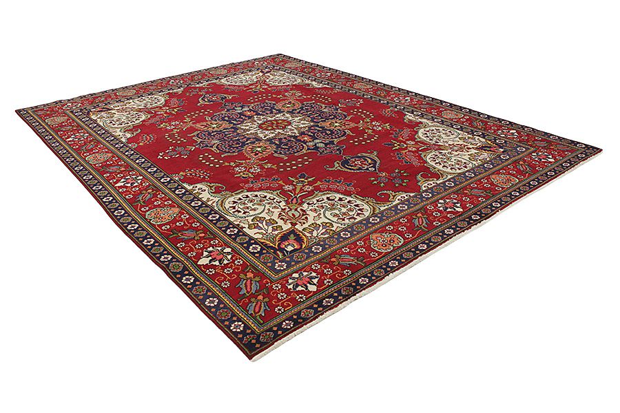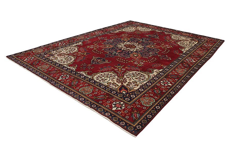 Tappeti Tabriz: La città di Tabriz è il capoluogo della provincia Azerbaijan,nell' Iran sudoccidentale.Fino alla fine dell' epoca delle carovane,era il centro più importante per il commercio e la tessitura dei tappeti.Da qui l' Occidente si procurava i capolavori creati da rinomati e abilissimi artigiani.L'alta qualità di questi manufatti li rese assai noti sui mercati di tutto il mondo.Sorsero molti laboratori di tappeti artigianali ,dove tessevano disegni vecchi e nuovi in nodi molto fitti e con materiali di ottima qualità. La seta e la lana sottile pregiata, li rendono tappeti d' alta classe.Da nessun' altra città della Persia passavano tanto grande varietà e tale quantità di tappeti.Con medaglioni o senza, i loro disegni sono pieni di fantasia e unici.Fiori, raffigurazioni e versi di poesie, decorano in oltre i tappeti. I colori di tappeti Tabriz dominanti sono il beige,il blu e il rosso.