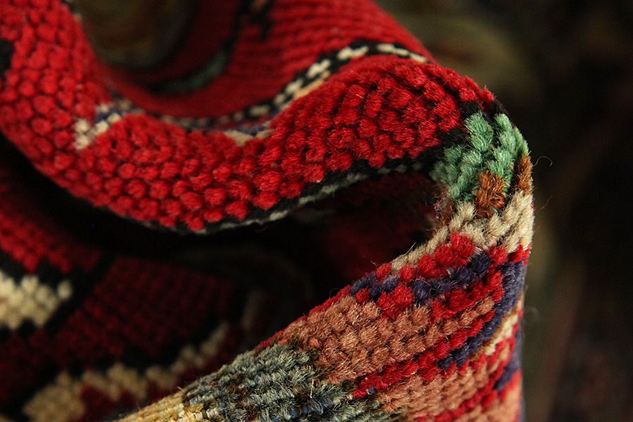 Abrash: Causa la differente grassezza delle lane e la differente quantità di sale ,nel corso del processo di tintura ,le lane assorbono quantitativi diversi di colore.Questo non è tanto visibile prima della tintura .Nel corso della tessitura però risultano variazioni cromatiche. Questo si chiama Abrash ed è la prova della genuinità e dell' autenticità di questi tappeti ,per i quali non vengono usate sostanze chimiche. Esempi