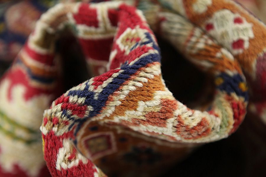 Abrash: Causa la differente grassezza delle lane e la differente quantità di sale ,nel corso del processo di tintura ,le lane assorbono quantitativi diversi di colore.Questo non è tanto visibile prima della tintura .Nel corso della tessitura però risultano variazioni cromatiche. Questo si chiama Abrash ed è la prova della genuinità e dell' autenticità di questi tappeti ,per i quali non vengono usate sostanze chimiche. Esempi