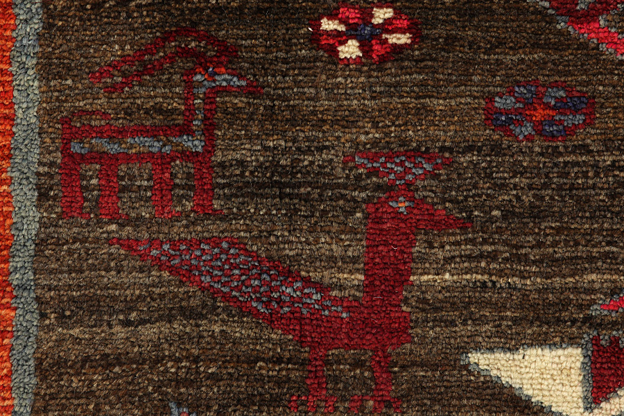 Tappeti Gabbeh: Gabbeh in persiano significa naturale,primitivo.Tappeti e tessuti con questo nome vengono prodotti da nomadi Qashqai erranti o abitanti di paesi dell'Iran sudoccidentale.I fili vengono lavorati e ritorti a mano,tinti con colori vegetali e intessuti su un ordito di lana il cui spessore arriva ai 2 cm.I tappeti sono semplici,con pochi disegni e solitamente a tinta unita.I disegni sobri,lineari,con figure animali e umane,gli danno un aspetto moderno.Vari nomi vengono dati ai tappeti Gabbeh come Basic,Amalehbaft,Kashkooli,Luribaft e Sumak.Un Gabbeh Kashkooli è un manufatto a nodi molto fitti e meno spesso di un comune Gabbeh.I Gabbeh persiani(al contrario di quelli indiani)sono assai resistenti e di qualità ottima.