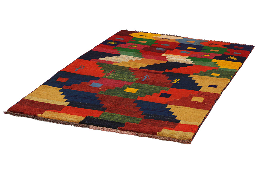 Tappeti Gabbeh: Gabbeh in persiano significa naturale,primitivo.Tappeti e tessuti con questo nome vengono prodotti da nomadi Qashqai erranti o abitanti di paesi dell'Iran sudoccidentale.I fili vengono lavorati e ritorti a mano,tinti con colori vegetali e intessuti su un ordito di lana il cui spessore arriva ai 2 cm.I tappeti sono semplici,con pochi disegni e solitamente a tinta unita.I disegni sobri,lineari,con figure animali e umane,gli danno un aspetto moderno.Vari nomi vengono dati ai tappeti Gabbeh come Basic,Amalehbaft,Kashkooli,Luribaft e Sumak.Un Gabbeh Kashkooli è un manufatto a nodi molto fitti e meno spesso di un comune Gabbeh.I Gabbeh persiani(al contrario di quelli indiani)sono assai resistenti e di qualità ottima.