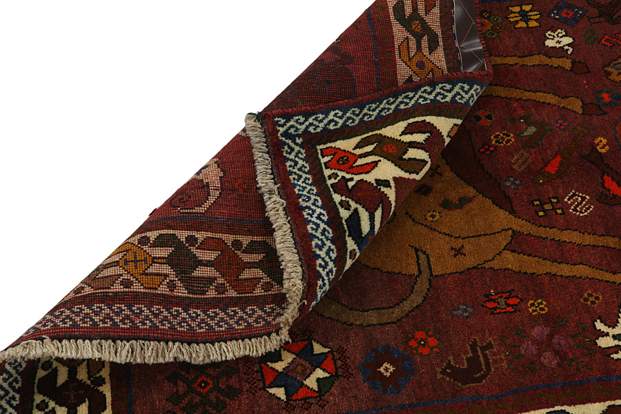 Tappeti Qashqai: I tappeti Qashqai sono tessuti da nomadi che vivono nelle zone montane della Persia sudoccidentale ,nelle province Fars,Khuzestan,a sud di Isfahan e nella zona intorno alla città di Shiraz.I loro tappeti sono fittamente annodati e hanno grande varietà di disegni ,di solito in rosso scuro e blu.Tessono tappeti,kilim e vari accessori (nastri,borse ecc),in cui raffigurano momenti della loro vita con figure umane,animali ,uccelli,alberi e fiori.In oltre , raffigurano monumenti storici,soprattutto di Persepoli.