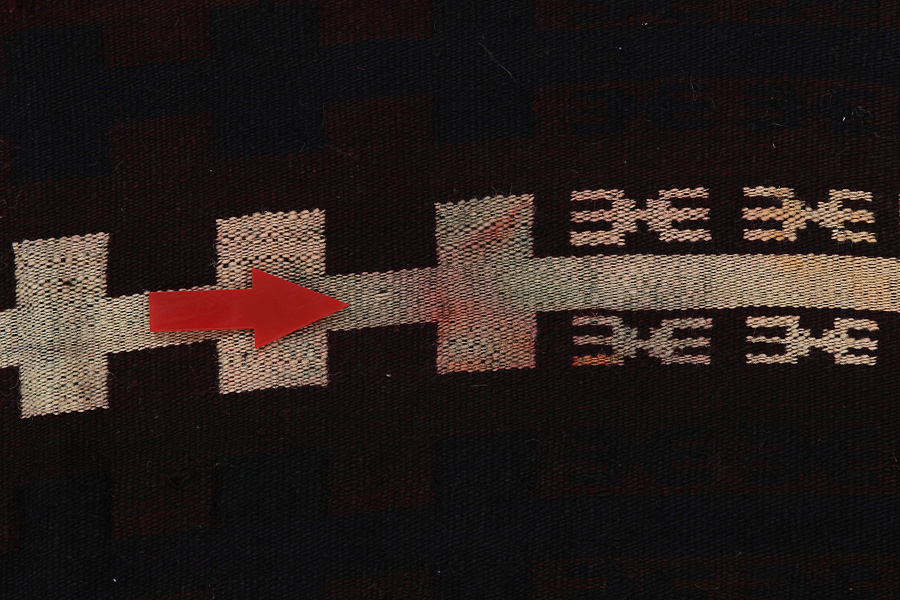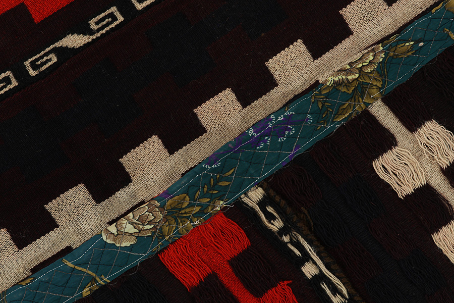 Tessuto a una o ad entrambe le balze terminali del lato lungo del tappeto: In determinati tappeti i nomadi,su una delle due lunghezze o su entrambe,intessono le frange in uno stretto Kilim o le intrecciano elaboratamente in piccole trecce.Trattasi di una tecnica adottata da diversi tessitori per ottenere maggiore robustezza o semplicemente dare sfoggio della loro bravura. Esempi