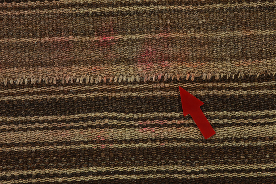 Tessuto a una o ad entrambe le balze terminali del lato lungo del tappeto: In determinati tappeti i nomadi,su una delle due lunghezze o su entrambe,intessono le frange in uno stretto Kilim o le intrecciano elaboratamente in piccole trecce.Trattasi di una tecnica adottata da diversi tessitori per ottenere maggiore robustezza o semplicemente dare sfoggio della loro bravura. Esempi
