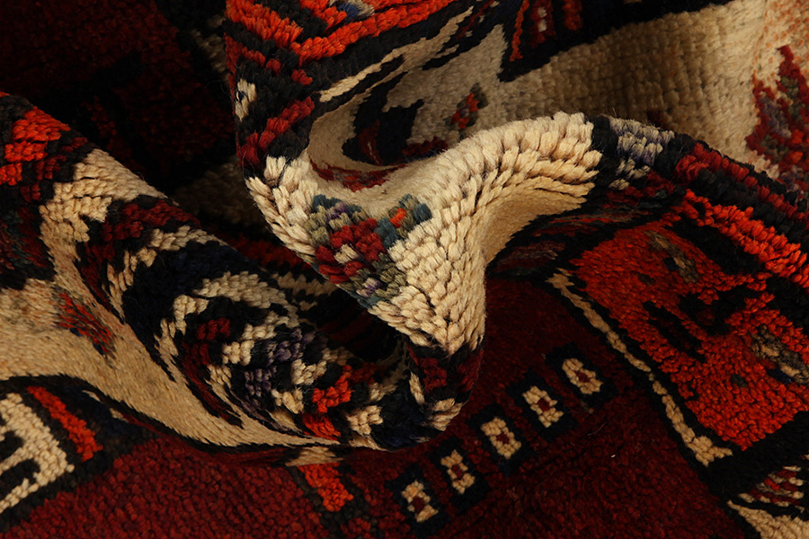 Tappeti Qashqai: I tappeti Qashqai sono tessuti da nomadi che vivono nelle zone montane della Persia sudoccidentale ,nelle province Fars,Khuzestan,a sud di Isfahan e nella zona intorno alla città di Shiraz.I loro tappeti sono fittamente annodati e hanno grande varietà di disegni ,di solito in rosso scuro e blu.Tessono tappeti,kilim e vari accessori (nastri,borse ecc),in cui raffigurano momenti della loro vita con figure umane,animali ,uccelli,alberi e fiori.In oltre , raffigurano monumenti storici,soprattutto di Persepoli.