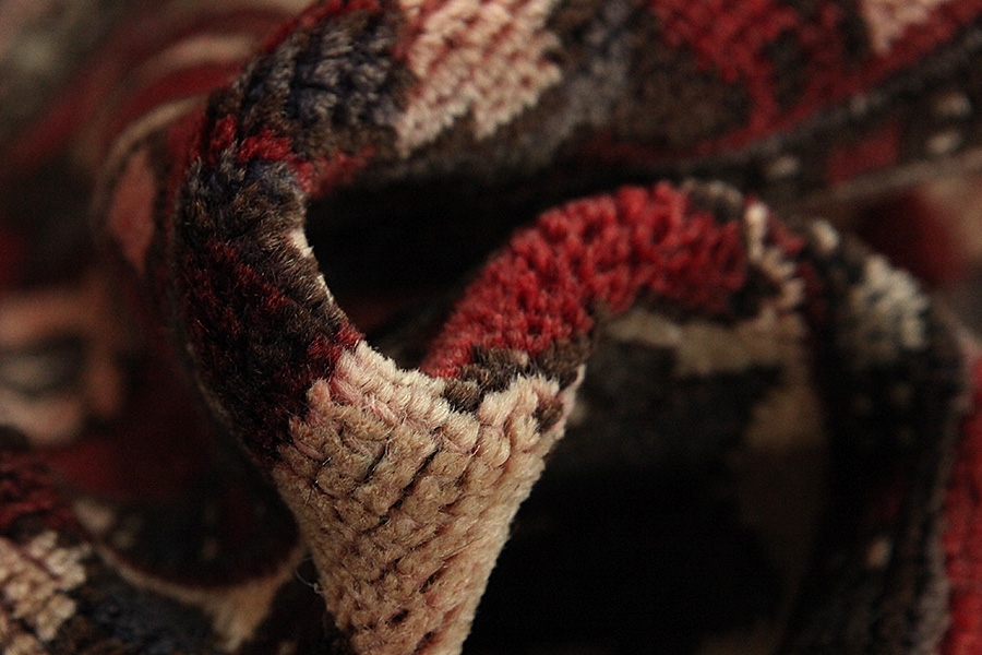 Abrash: Causa la differente grassezza delle lane e la differente quantità di sale ,nel corso del processo di tintura ,le lane assorbono quantitativi diversi di colore.Questo non è tanto visibile prima della tintura .Nel corso della tessitura però risultano variazioni cromatiche. Questo si chiama Abrash ed è la prova della genuinità e dell' autenticità di questi tappeti ,per i quali non vengono usate sostanze chimiche. Esempi