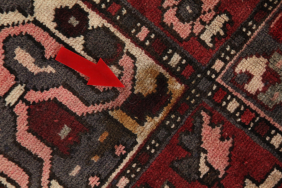Il tappeto risulta consunto in alcuni punti.