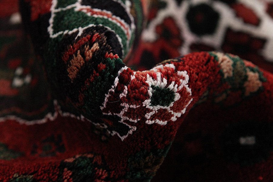 Abrash: Causa la differente grassezza delle lane e la differente quantità di sale ,nel corso del processo di tintura ,le lane assorbono quantitativi diversi di colore.Questo non è tanto visibile prima della tintura .Nel corso della tessitura però risultano variazioni cromatiche. Questo si chiama Abrash ed è la prova della genuinità e dell' autenticità di questi tappeti ,per i quali non vengono usate sostanze chimiche. Esempi