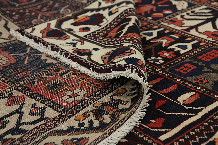 Tappeti Bakhtiari: Sui monti Zagros,a occidente della città Isfahan,intorno alla città Shar-e-Kurd, vivono i nomadi Bakhtiar.I loro tappeti sono noti per il disegno con vari quadrati ripetuti, in cui vengono rappresentati fiori o animali.Per questa ragione il disegno si chiama " Giardino"(Khesti).I loro tappeti sono assai robusti,dalla tessitura fitta e sono di una lana di qualità molto buona,ricavata da pecore che pascolano ad alta quota.I migliori tappeti Bakhtiari che hanno la maggiore fittezza di nodi si chiamano Bibibaf.In oltre in molti disegni si notano influenze dei manufatti Isfahan(Boldaji,Feridan,Saman).
