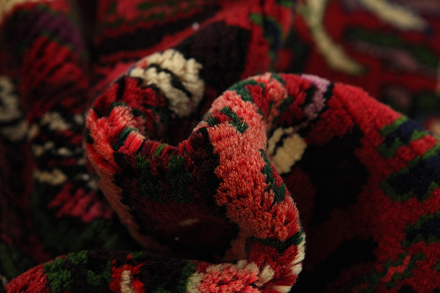Abrash: Causa la differente grassezza delle lane e la differente quantità di sale ,nel corso del processo di tintura ,le lane assorbono quantitativi diversi di colore.Questo non è tanto visibile prima della tintura .Nel corso della tessitura però risultano variazioni cromatiche. Questo si chiama Abrash ed è la prova della genuinità e dell' autenticità di questi tappeti ,per i quali non vengono usate sostanze chimiche. Esempi