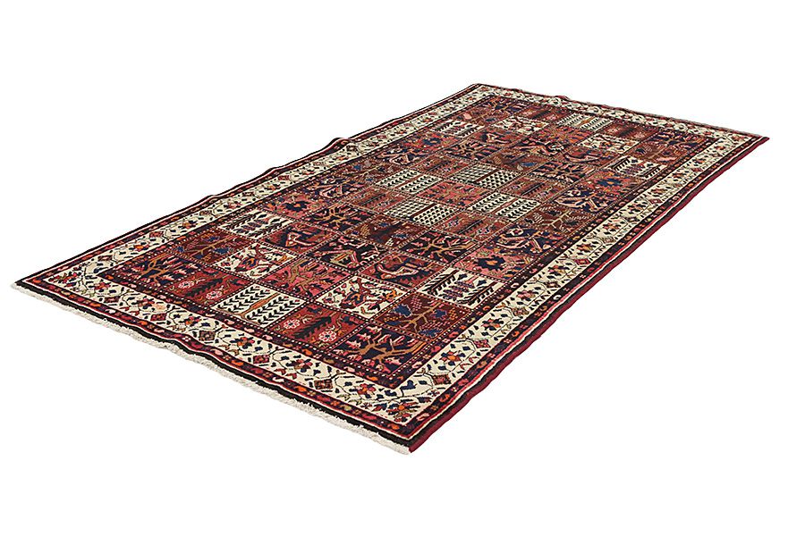 Tappeti Bakhtiari: Sui monti Zagros,a occidente della città Isfahan,intorno alla città Shar-e-Kurd, vivono i nomadi Bakhtiar.I loro tappeti sono noti per il disegno con vari quadrati ripetuti, in cui vengono rappresentati fiori o animali.Per questa ragione il disegno si chiama " Giardino"(Khesti).I loro tappeti sono assai robusti,dalla tessitura fitta e sono di una lana di qualità molto buona,ricavata da pecore che pascolano ad alta quota.I migliori tappeti Bakhtiari che hanno la maggiore fittezza di nodi si chiamano Bibibaf.In oltre in molti disegni si notano influenze dei manufatti Isfahan(Boldaji,Feridan,Saman).
