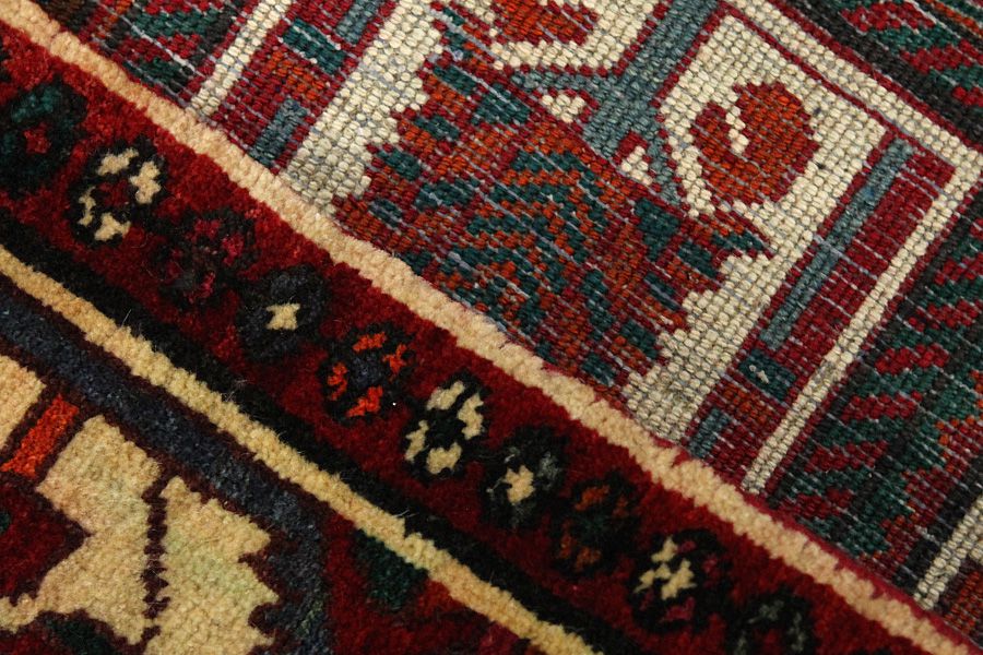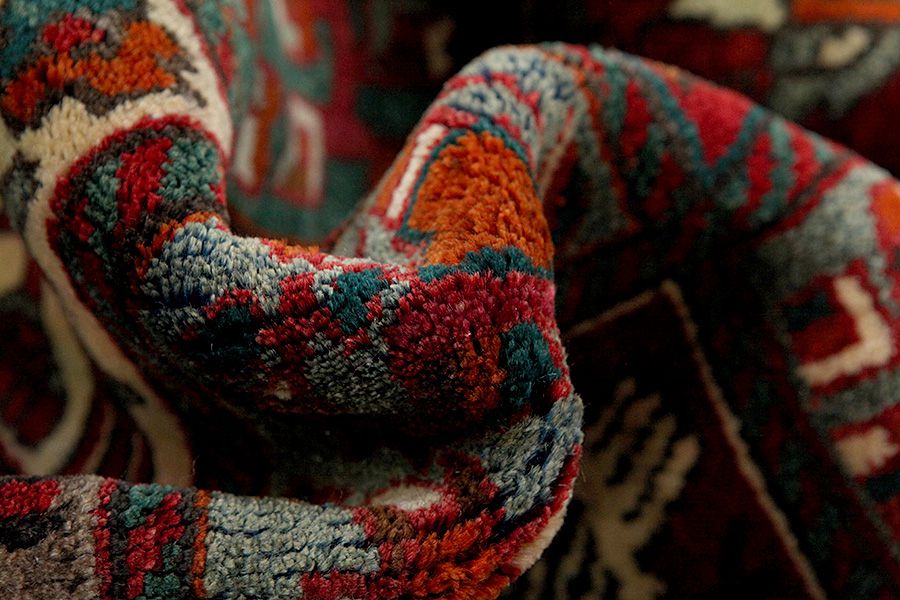 Abrash: Causa la differente grassezza delle lane e la differente quantità di sale ,nel corso del processo di tintura ,le lane assorbono quantitativi diversi di colore.Questo non è tanto visibile prima della tintura .Nel corso della tessitura però risultano variazioni cromatiche. Questo si chiama Abrash ed è la prova della genuinità e dell' autenticità di questi tappeti ,per i quali non vengono usate sostanze chimiche. Esempi