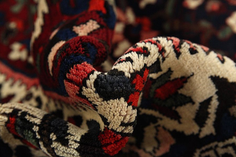 Abrash: Causa la differente grassezza delle lane e la differente quantità di sale ,nel corso del processo di tintura ,le lane assorbono quantitativi diversi di colore.Questo non è tanto visibile prima della tintura .Nel corso della tessitura però risultano variazioni cromatiche. Questo si chiama Abrash ed è la prova della genuinità e dell' autenticità di questi tappeti ,per i quali non vengono usate sostanze chimiche. Esempi