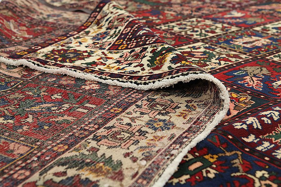 Tappeti Bakhtiari: Sui monti Zagros,a occidente della città Isfahan,intorno alla città Shar-e-Kurd, vivono i nomadi Bakhtiar.I loro tappeti sono noti per il disegno con vari quadrati ripetuti, in cui vengono rappresentati fiori o animali.Per questa ragione il disegno si chiama " Giardino"(Khesti).I loro tappeti sono assai robusti,dalla tessitura fitta e sono di una lana di qualità molto buona,ricavata da pecore che pascolano ad alta quota.I migliori tappeti Bakhtiari che hanno la maggiore fittezza di nodi si chiamano Bibibaf.In oltre in molti disegni si notano influenze dei manufatti Isfahan(Boldaji,Feridan,Saman).