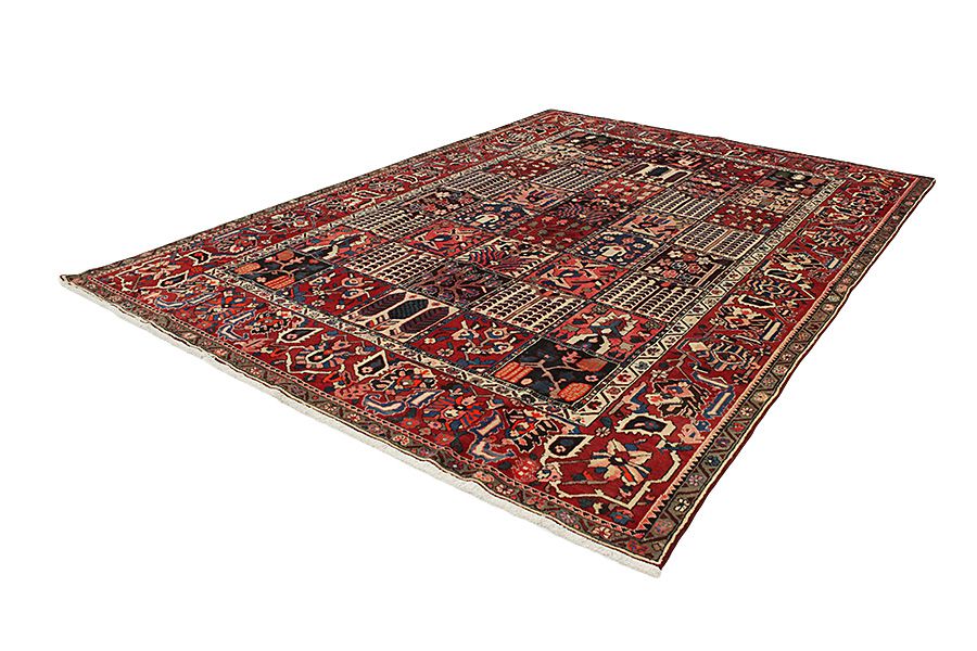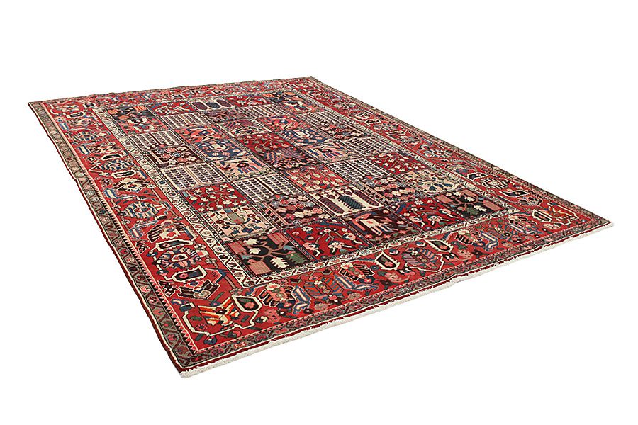Tappeti Bakhtiari: Sui monti Zagros,a occidente della città Isfahan,intorno alla città Shar-e-Kurd, vivono i nomadi Bakhtiar.I loro tappeti sono noti per il disegno con vari quadrati ripetuti, in cui vengono rappresentati fiori o animali.Per questa ragione il disegno si chiama " Giardino"(Khesti).I loro tappeti sono assai robusti,dalla tessitura fitta e sono di una lana di qualità molto buona,ricavata da pecore che pascolano ad alta quota.I migliori tappeti Bakhtiari che hanno la maggiore fittezza di nodi si chiamano Bibibaf.In oltre in molti disegni si notano influenze dei manufatti Isfahan(Boldaji,Feridan,Saman).