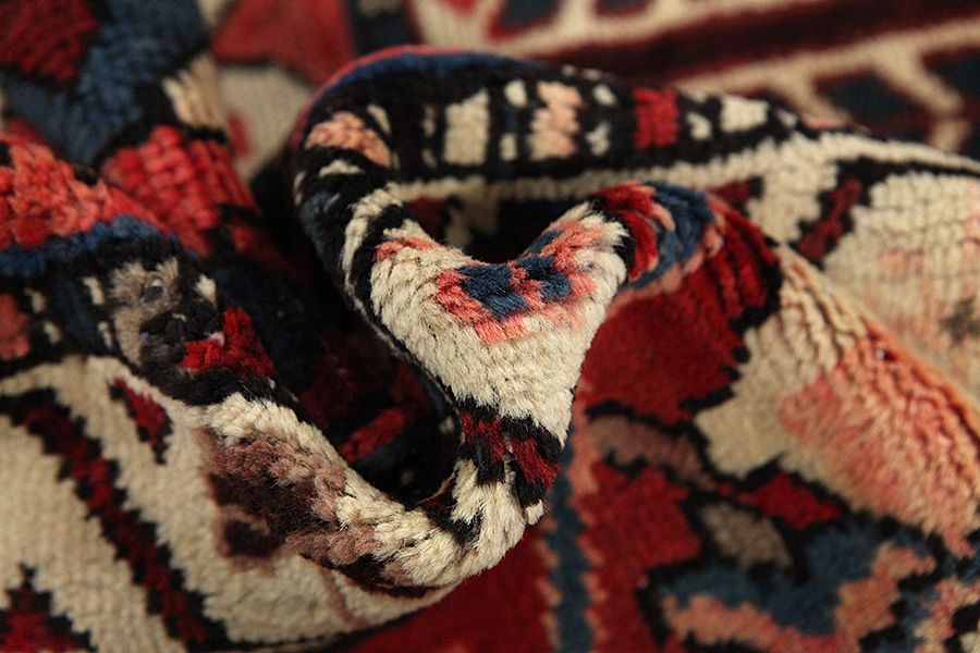 Abrash: Causa la differente grassezza delle lane e la differente quantità di sale ,nel corso del processo di tintura ,le lane assorbono quantitativi diversi di colore.Questo non è tanto visibile prima della tintura .Nel corso della tessitura però risultano variazioni cromatiche. Questo si chiama Abrash ed è la prova della genuinità e dell' autenticità di questi tappeti ,per i quali non vengono usate sostanze chimiche. Esempi