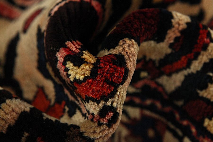 Abrash: Causa la differente grassezza delle lane e la differente quantità di sale ,nel corso del processo di tintura ,le lane assorbono quantitativi diversi di colore.Questo non è tanto visibile prima della tintura .Nel corso della tessitura però risultano variazioni cromatiche. Questo si chiama Abrash ed è la prova della genuinità e dell' autenticità di questi tappeti ,per i quali non vengono usate sostanze chimiche. Esempi