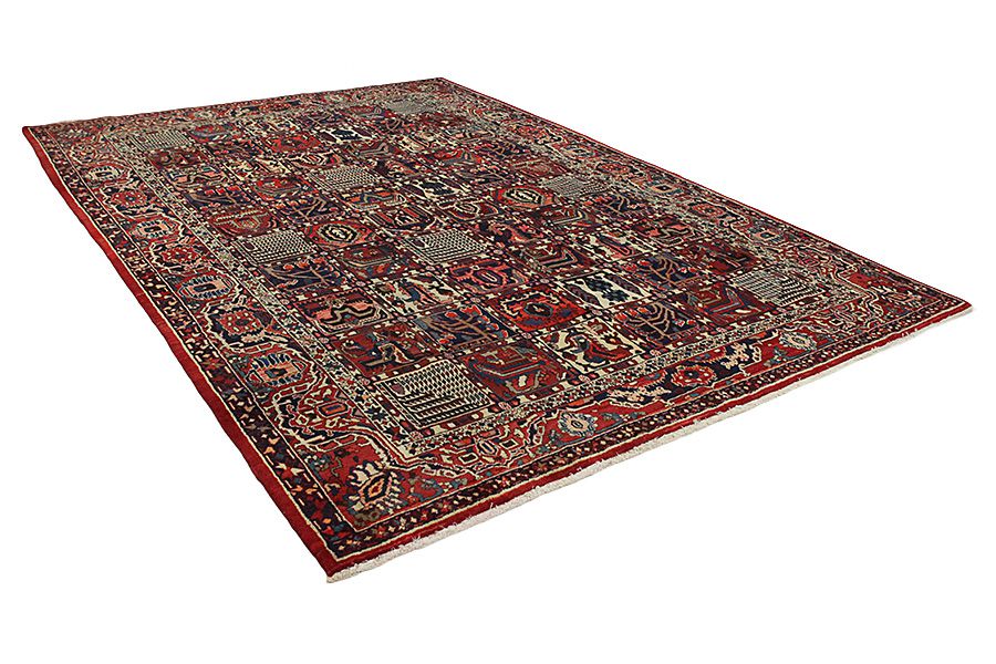 Tappeti Bakhtiari: Sui monti Zagros,a occidente della città Isfahan,intorno alla città Shar-e-Kurd, vivono i nomadi Bakhtiar.I loro tappeti sono noti per il disegno con vari quadrati ripetuti, in cui vengono rappresentati fiori o animali.Per questa ragione il disegno si chiama " Giardino"(Khesti).I loro tappeti sono assai robusti,dalla tessitura fitta e sono di una lana di qualità molto buona,ricavata da pecore che pascolano ad alta quota.I migliori tappeti Bakhtiari che hanno la maggiore fittezza di nodi si chiamano Bibibaf.In oltre in molti disegni si notano influenze dei manufatti Isfahan(Boldaji,Feridan,Saman).