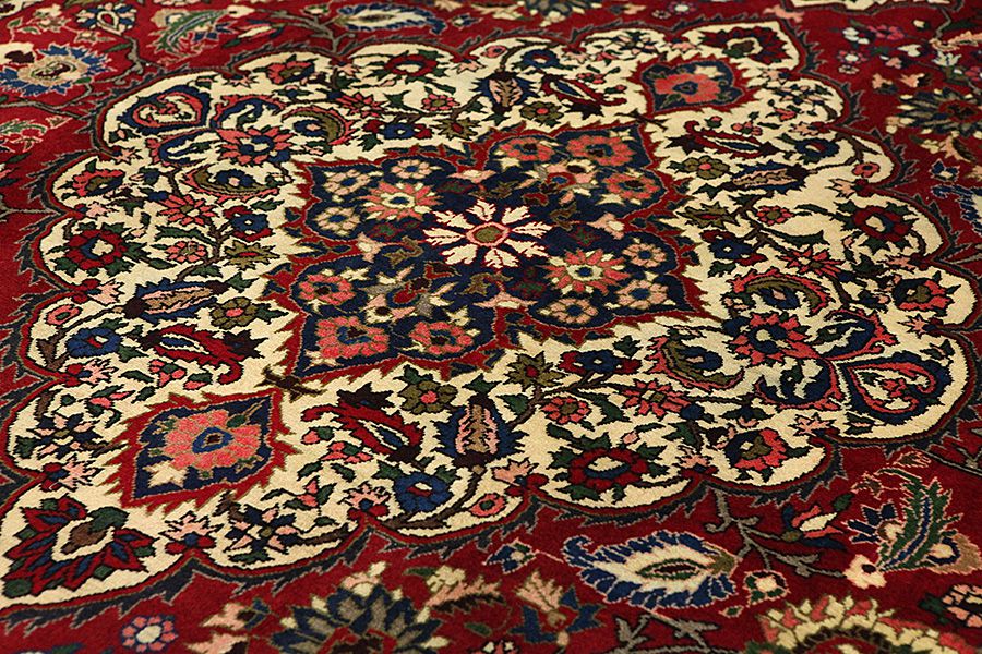 Abrash: Causa la differente grassezza delle lane e la differente quantità di sale ,nel corso del processo di tintura ,le lane assorbono quantitativi diversi di colore.Questo non è tanto visibile prima della tintura .Nel corso della tessitura però risultano variazioni cromatiche. Questo si chiama Abrash ed è la prova della genuinità e dell' autenticità di questi tappeti ,per i quali non vengono usate sostanze chimiche. Esempi