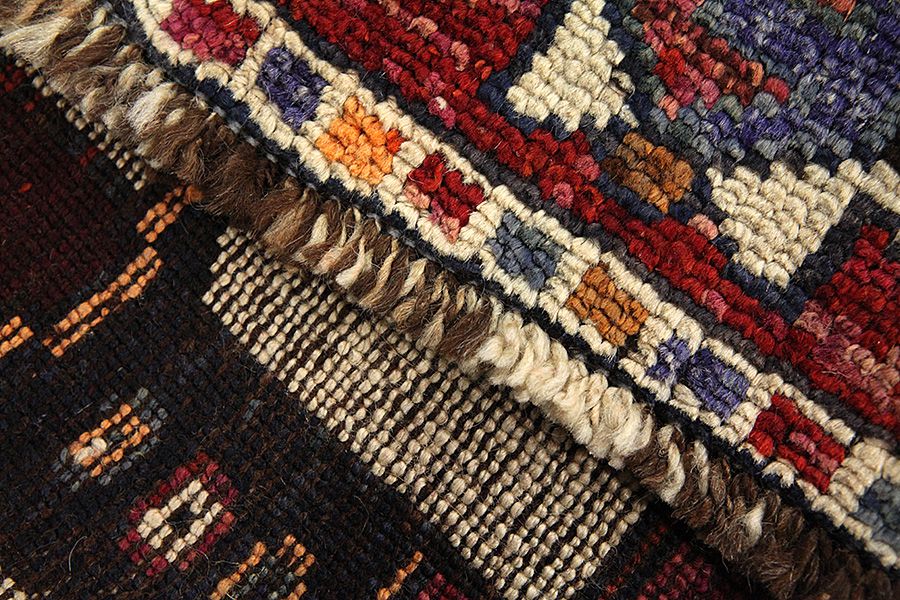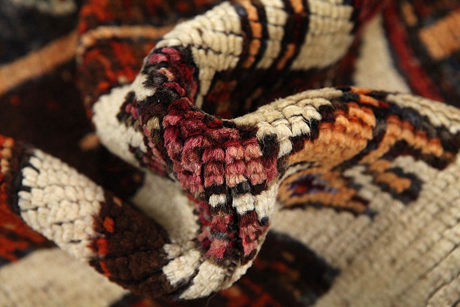 Abrash: Causa la differente grassezza delle lane e la differente quantità di sale ,nel corso del processo di tintura ,le lane assorbono quantitativi diversi di colore.Questo non è tanto visibile prima della tintura .Nel corso della tessitura però risultano variazioni cromatiche. Questo si chiama Abrash ed è la prova della genuinità e dell' autenticità di questi tappeti ,per i quali non vengono usate sostanze chimiche. Esempi