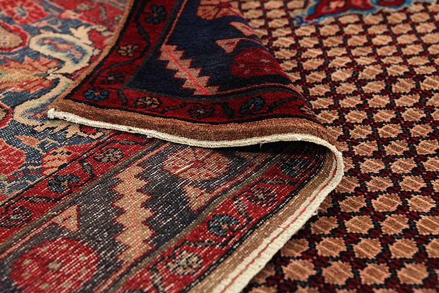 Abrash: Causa la differente grassezza delle lane e la differente quantità di sale ,nel corso del processo di tintura ,le lane assorbono quantitativi diversi di colore.Questo non è tanto visibile prima della tintura .Nel corso della tessitura però risultano variazioni cromatiche. Questo si chiama Abrash ed è la prova della genuinità e dell' autenticità di questi tappeti ,per i quali non vengono usate sostanze chimiche. Esempi