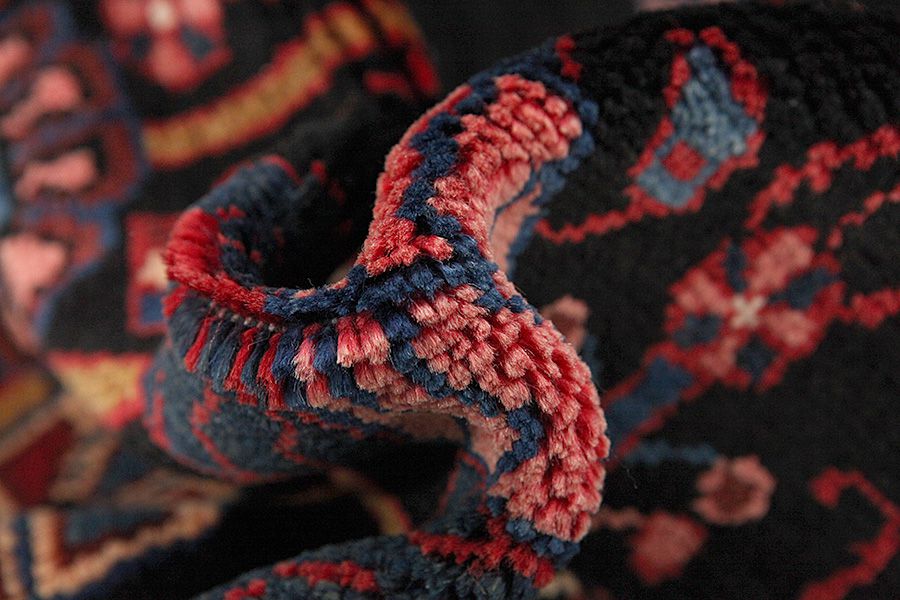 Abrash: Causa la differente grassezza delle lane e la differente quantità di sale ,nel corso del processo di tintura ,le lane assorbono quantitativi diversi di colore.Questo non è tanto visibile prima della tintura .Nel corso della tessitura però risultano variazioni cromatiche. Questo si chiama Abrash ed è la prova della genuinità e dell' autenticità di questi tappeti ,per i quali non vengono usate sostanze chimiche. Esempi