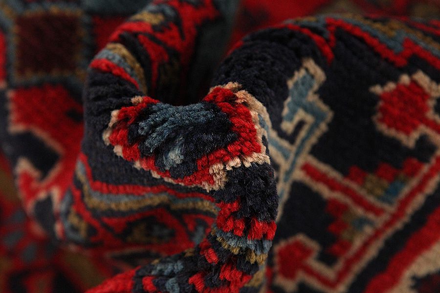 Abrash: Causa la differente grassezza delle lane e la differente quantità di sale ,nel corso del processo di tintura ,le lane assorbono quantitativi diversi di colore.Questo non è tanto visibile prima della tintura .Nel corso della tessitura però risultano variazioni cromatiche. Questo si chiama Abrash ed è la prova della genuinità e dell' autenticità di questi tappeti ,per i quali non vengono usate sostanze chimiche. Esempi