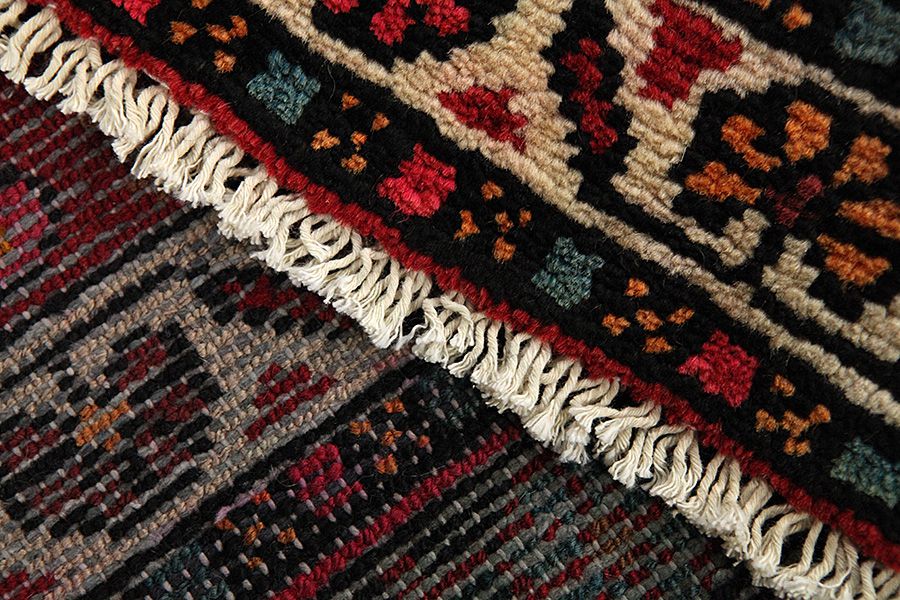 Abrash: Causa la differente grassezza delle lane e la differente quantità di sale ,nel corso del processo di tintura ,le lane assorbono quantitativi diversi di colore.Questo non è tanto visibile prima della tintura .Nel corso della tessitura però risultano variazioni cromatiche. Questo si chiama Abrash ed è la prova della genuinità e dell' autenticità di questi tappeti ,per i quali non vengono usate sostanze chimiche. Esempi