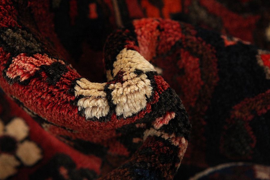 Abrash: Causa la differente grassezza delle lane e la differente quantità di sale ,nel corso del processo di tintura ,le lane assorbono quantitativi diversi di colore.Questo non è tanto visibile prima della tintura .Nel corso della tessitura però risultano variazioni cromatiche. Questo si chiama Abrash ed è la prova della genuinità e dell' autenticità di questi tappeti ,per i quali non vengono usate sostanze chimiche. Esempi