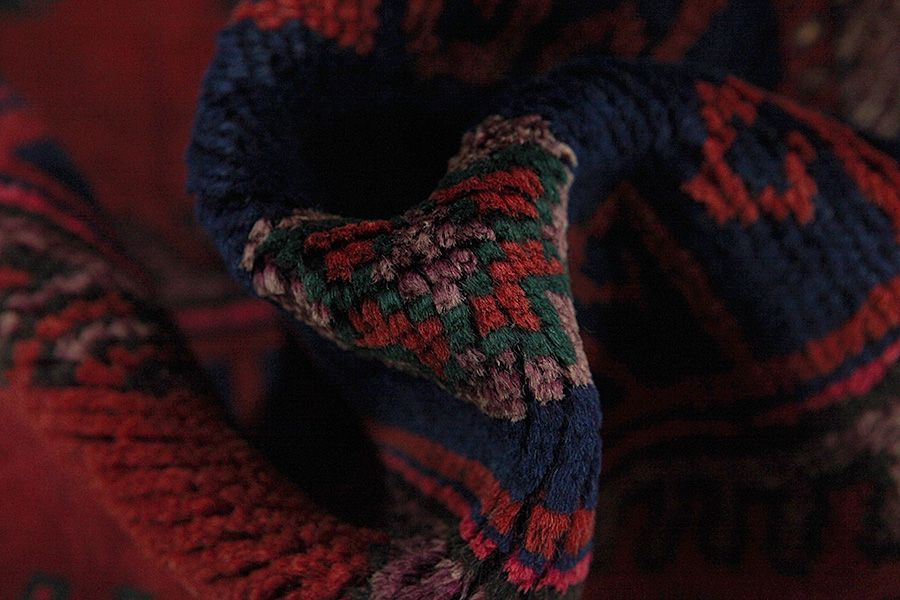 Abrash: Causa la differente grassezza delle lane e la differente quantità di sale ,nel corso del processo di tintura ,le lane assorbono quantitativi diversi di colore.Questo non è tanto visibile prima della tintura .Nel corso della tessitura però risultano variazioni cromatiche. Questo si chiama Abrash ed è la prova della genuinità e dell' autenticità di questi tappeti ,per i quali non vengono usate sostanze chimiche. Esempi