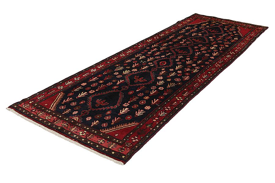 Tappeti Hamadan: La città Hamadan si trova nella parte nordoccidentale dell'Iran,300 chilometri a occidente di Teheran.Risulta una delle più antiche città del mondo e viene riferita nelle Sacre Scritture come Ecvatana.Questa città costituisce un centro di raccolta e di commercio dei tappeti fabbricati in centinaia di paesi e città vicini.Molti di tali manufatti sono venduti con loro nomi,tipo Nahavand,Tuiserkan,Malayer,Hosseinabad,Burchalow,Enjilas,Lilihan,Khamse e Zanjan.I tappeti più semplici della zona sono venduti col nome Hamadan.Ogni paese ha il suo modo di tessere tappeti,con disegni e colori propri.Per la maggior parte dei tappeti Hamadan si usa lana di buona qualità e a vari di colori.Le tinture sono vegetali e dominano diverse sfumature di blu indaco e di rosso.