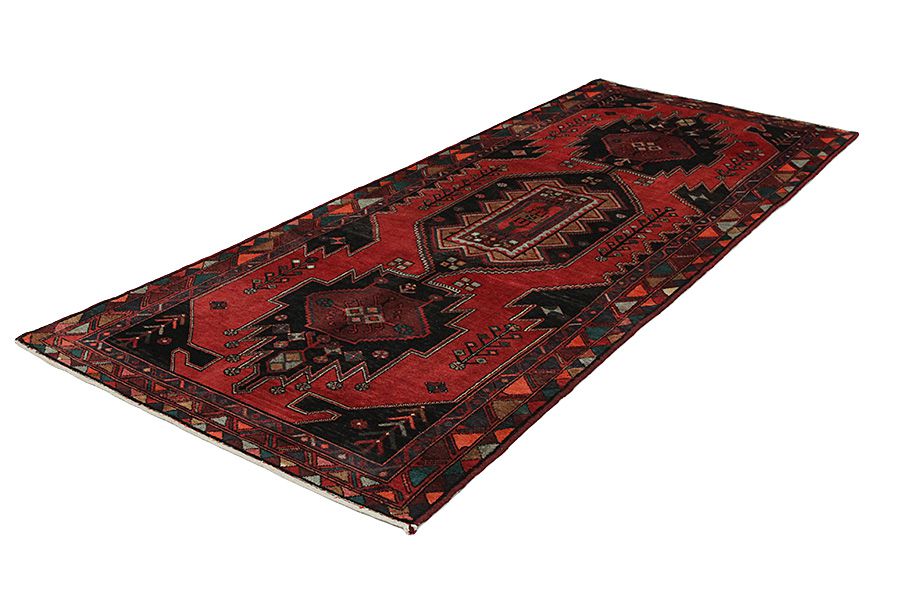 Tappeti Hamadan: La città Hamadan si trova nella parte nordoccidentale dell'Iran,300 chilometri a occidente di Teheran.Risulta una delle più antiche città del mondo e viene riferita nelle Sacre Scritture come Ecvatana.Questa città costituisce un centro di raccolta e di commercio dei tappeti fabbricati in centinaia di paesi e città vicini.Molti di tali manufatti sono venduti con loro nomi,tipo Nahavand,Tuiserkan,Malayer,Hosseinabad,Burchalow,Enjilas,Lilihan,Khamse e Zanjan.I tappeti più semplici della zona sono venduti col nome Hamadan.Ogni paese ha il suo modo di tessere tappeti,con disegni e colori propri.Per la maggior parte dei tappeti Hamadan si usa lana di buona qualità e a vari di colori.Le tinture sono vegetali e dominano diverse sfumature di blu indaco e di rosso.