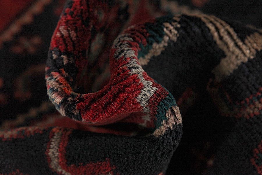 Abrash: Causa la differente grassezza delle lane e la differente quantità di sale ,nel corso del processo di tintura ,le lane assorbono quantitativi diversi di colore.Questo non è tanto visibile prima della tintura .Nel corso della tessitura però risultano variazioni cromatiche. Questo si chiama Abrash ed è la prova della genuinità e dell' autenticità di questi tappeti ,per i quali non vengono usate sostanze chimiche. Esempi