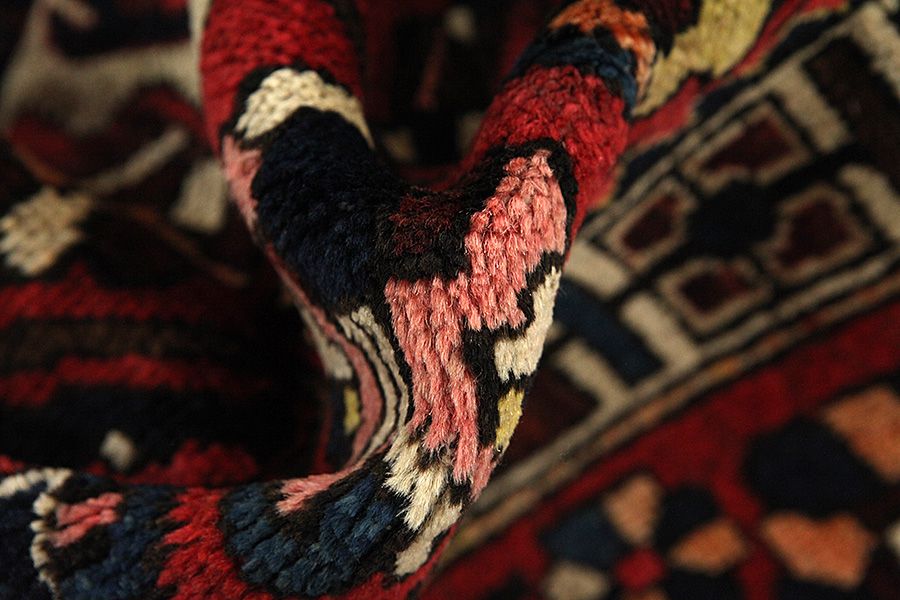 Abrash: Causa la differente grassezza delle lane e la differente quantità di sale ,nel corso del processo di tintura ,le lane assorbono quantitativi diversi di colore.Questo non è tanto visibile prima della tintura .Nel corso della tessitura però risultano variazioni cromatiche. Questo si chiama Abrash ed è la prova della genuinità e dell' autenticità di questi tappeti ,per i quali non vengono usate sostanze chimiche. Esempi