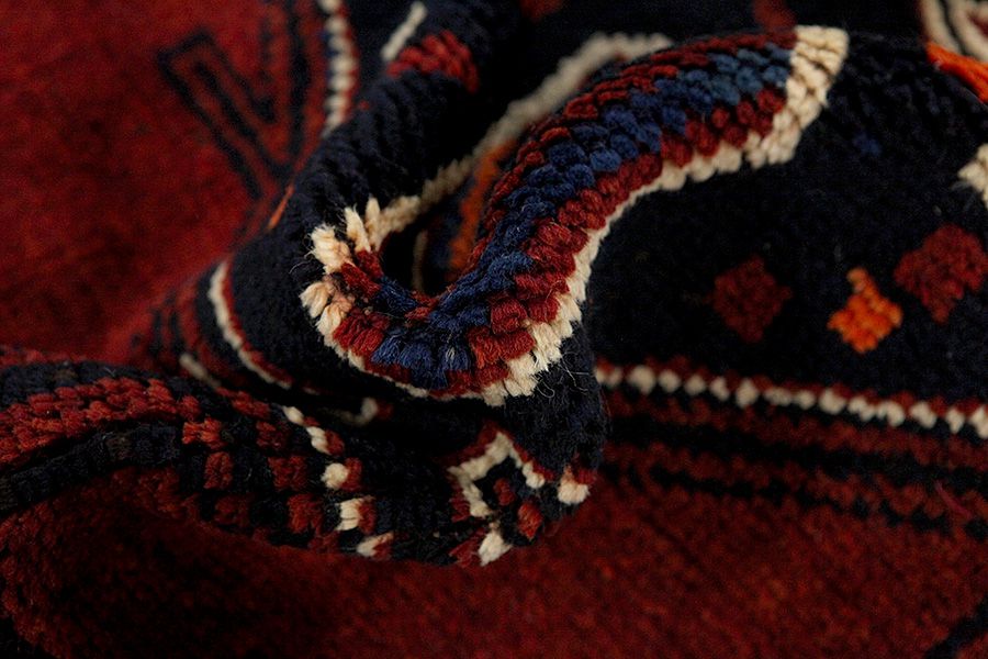 Tappeti Qashqai: I tappeti Qashqai sono tessuti da nomadi che vivono nelle zone montane della Persia sudoccidentale ,nelle province Fars,Khuzestan,a sud di Isfahan e nella zona intorno alla città di Shiraz.I loro tappeti sono fittamente annodati e hanno grande varietà di disegni ,di solito in rosso scuro e blu.Tessono tappeti,kilim e vari accessori (nastri,borse ecc),in cui raffigurano momenti della loro vita con figure umane,animali ,uccelli,alberi e fiori.In oltre , raffigurano monumenti storici,soprattutto di Persepoli.