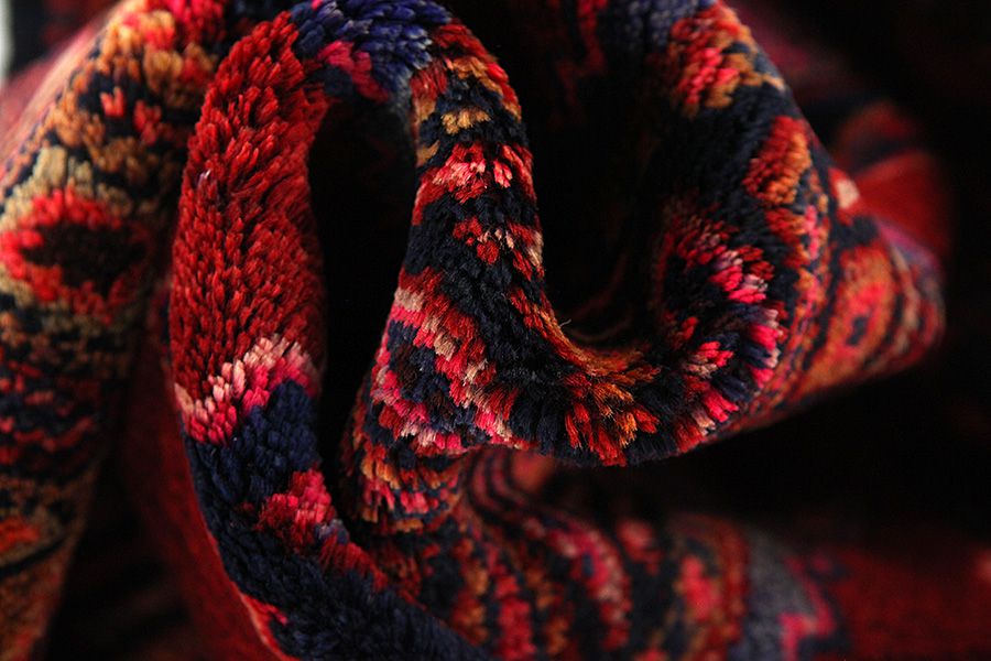 Abrash: Causa la differente grassezza delle lane e la differente quantità di sale ,nel corso del processo di tintura ,le lane assorbono quantitativi diversi di colore.Questo non è tanto visibile prima della tintura .Nel corso della tessitura però risultano variazioni cromatiche. Questo si chiama Abrash ed è la prova della genuinità e dell' autenticità di questi tappeti ,per i quali non vengono usate sostanze chimiche. Esempi