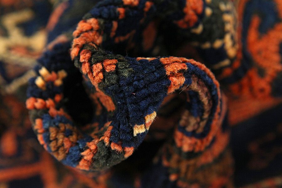 Abrash: Causa la differente grassezza delle lane e la differente quantità di sale ,nel corso del processo di tintura ,le lane assorbono quantitativi diversi di colore.Questo non è tanto visibile prima della tintura .Nel corso della tessitura però risultano variazioni cromatiche. Questo si chiama Abrash ed è la prova della genuinità e dell' autenticità di questi tappeti ,per i quali non vengono usate sostanze chimiche. Esempi