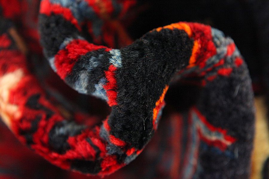 Abrash: Causa la differente grassezza delle lane e la differente quantità di sale ,nel corso del processo di tintura ,le lane assorbono quantitativi diversi di colore.Questo non è tanto visibile prima della tintura .Nel corso della tessitura però risultano variazioni cromatiche. Questo si chiama Abrash ed è la prova della genuinità e dell' autenticità di questi tappeti ,per i quali non vengono usate sostanze chimiche. Esempi