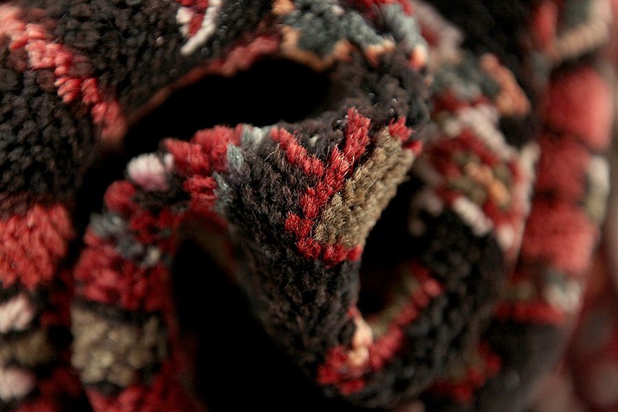 Abrash: Causa la differente grassezza delle lane e la differente quantità di sale ,nel corso del processo di tintura ,le lane assorbono quantitativi diversi di colore.Questo non è tanto visibile prima della tintura .Nel corso della tessitura però risultano variazioni cromatiche. Questo si chiama Abrash ed è la prova della genuinità e dell' autenticità di questi tappeti ,per i quali non vengono usate sostanze chimiche. Esempi